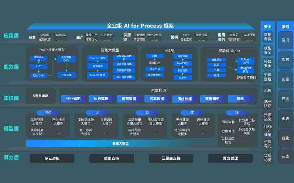 端到端的一站式AI工作空间深度融合了从企业战略规划到日常经营的全流程业务板块,,,定向解决车企内部领域多、、、部门多、、链条长、、、场景碎片化等难题,,,支持车企快速构建以AI为核心的生产力写作体系,,,实现任务执行与AI能力的无缝集成与交互